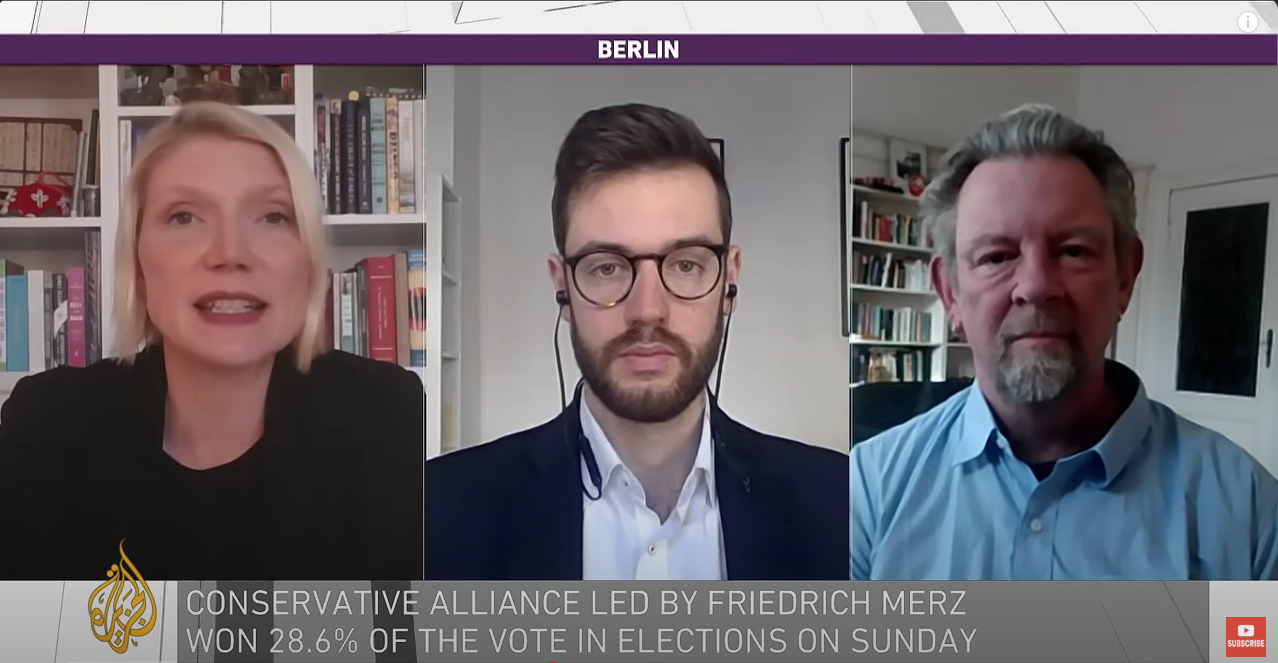 Die Gäste bei Al Jazeera "Inside Story" am 25.02.2025 zur Einordnung der Ergebnisse der Bundestagswahl in Deutschland: