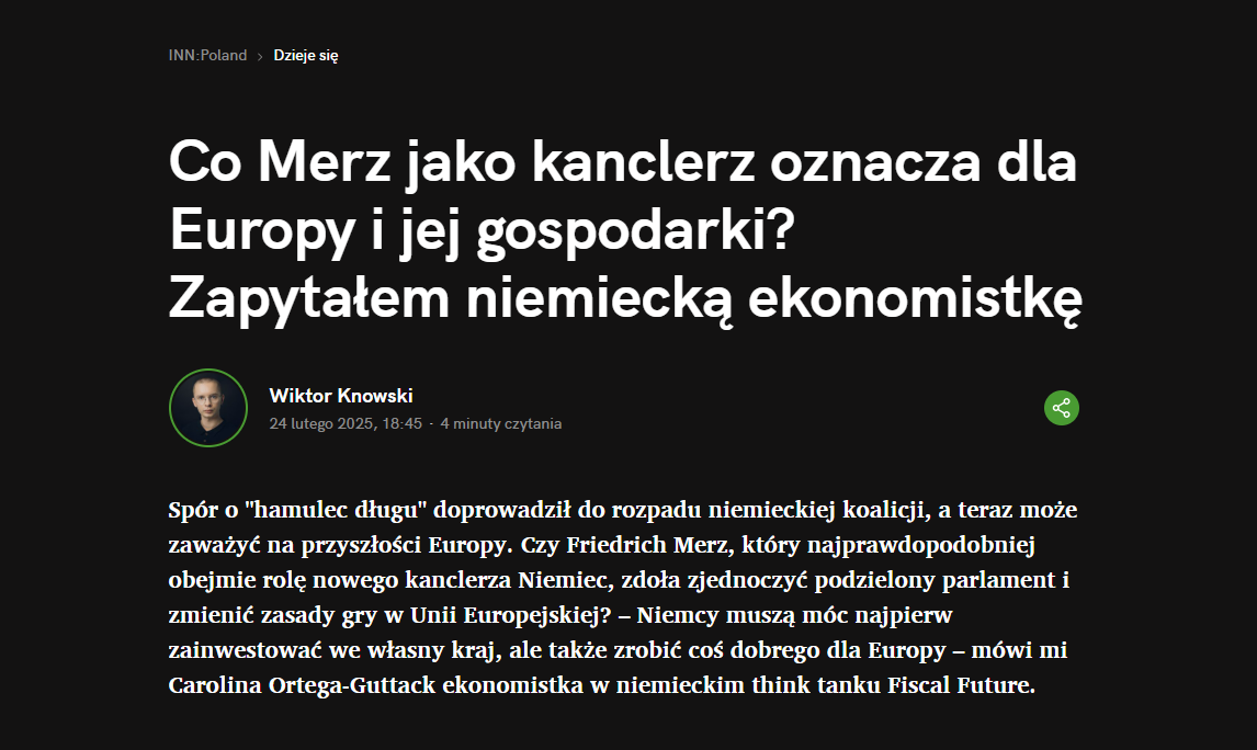 Carolina Ortega Guttack in der Polnischen Zeitschrift "InnPoland" zu Schuldenbremse & Bundestagswahl
