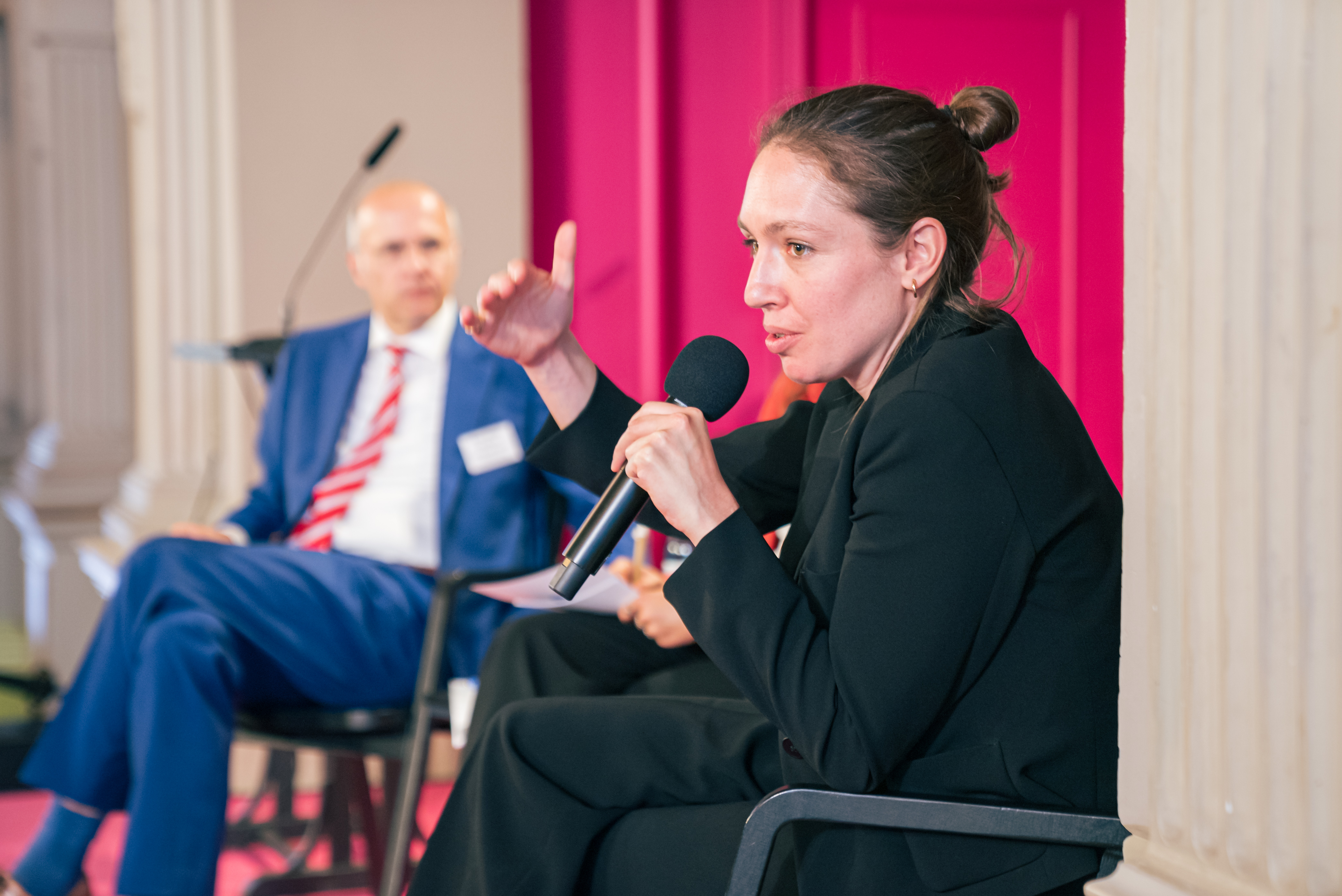 Anschließend haben sie gemeinsam mit den Teilnehmer:innen diskutiert, wie diese Bedarfe gedeckt werden könnten. Dabei kommt es u.a. auf die Kombination aus öffentlichen und privaten Geldern an sowie auf den Zeitraum, in dem sich Finanzierungen materialisieren. Klaus Deutsch machte deutlich: Bei der Frage nach den Investitionsbedarfen streitet man nicht mehr in der Sache, sondern in der Abgrenzung und Berechnungweise. Dabei stellt sich auch die Frage danach, welcher Referenzwert dem gegenübergestellt werden muss - mit anderen Worten: Was kostet es, heute nicht zu investieren. Dieser Frage liegt wiederum die Frage danach, was sich eigentlich messen lässt, zugrunde, wie Philippa Sigl-Glöckner klarstellte.