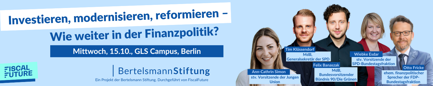 Hier könnt ihr euch für die Veranstaltung anmelden: https://bertelsmann-stiftung.eventanizer.events/ticket/FiscalFuture
