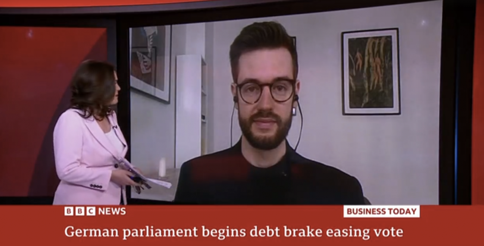 We regularly contribute to discussions on economic and fiscal policy – across television, radio, print, and international platforms. For example, on September 18, 2025, Carl Mühlbach was a guest on the Phoenix talk show Phoenix Runde, discussing the topic “Debt for the Future – Is the Black-Red Government Investing Wisely?” Rewatch here (German).