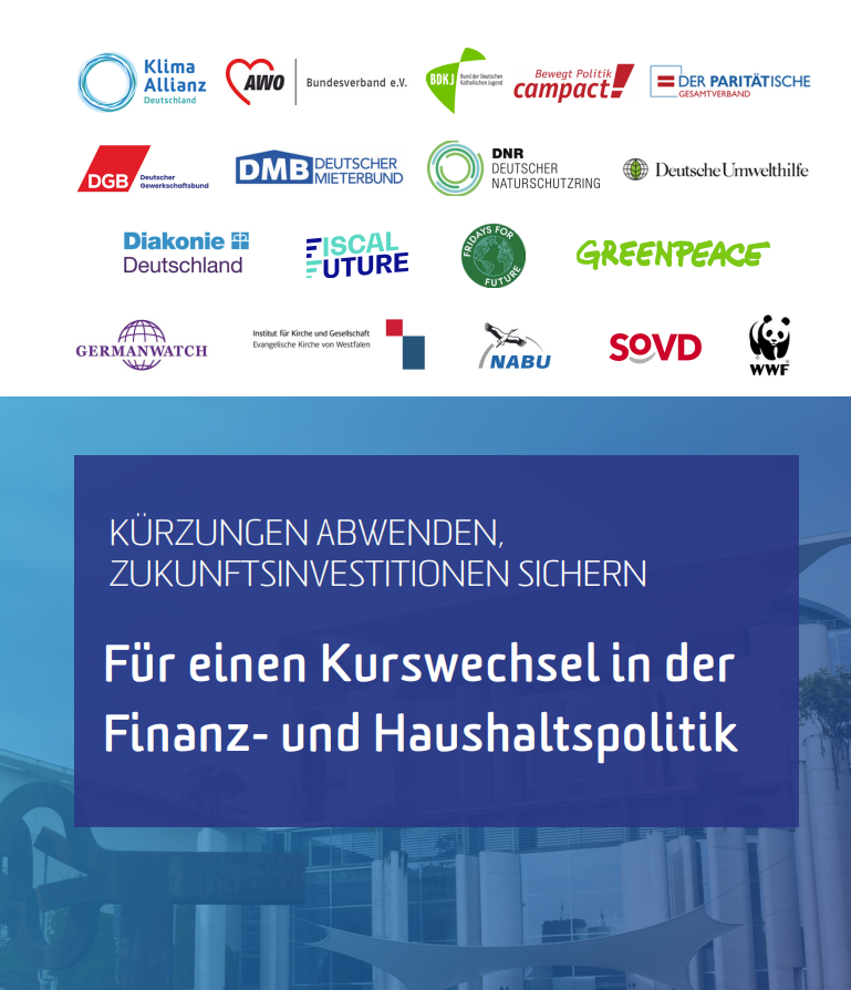 Mit insgesamt 18 Klima-, Wohlfahrts- und Jugendverbänden, Kirchen, Mieterverbänden und Gewerkschaften machen wir deutlich, was es jetzt braucht: Einen Kurswechsel in der Finanz- und Haushaltspolitik!