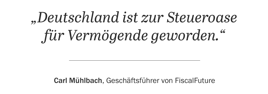 Carl Mühlbach kommentiert die Situation in Deutschland: „Auch in Deutschland verfügen einige wenige Familien über mehr Vermögen als die ärmeren 40 Millionen Menschen zusammen. Mit gleichen Chancen hat das längst nichts mehr zu tun. Arbeitseinkommen wird in Deutschland im internationalen Vergleich hoch besteuert – Vermögen dagegen kaum. Deutschland ist zur Steueroase für Vermögende geworden.“
