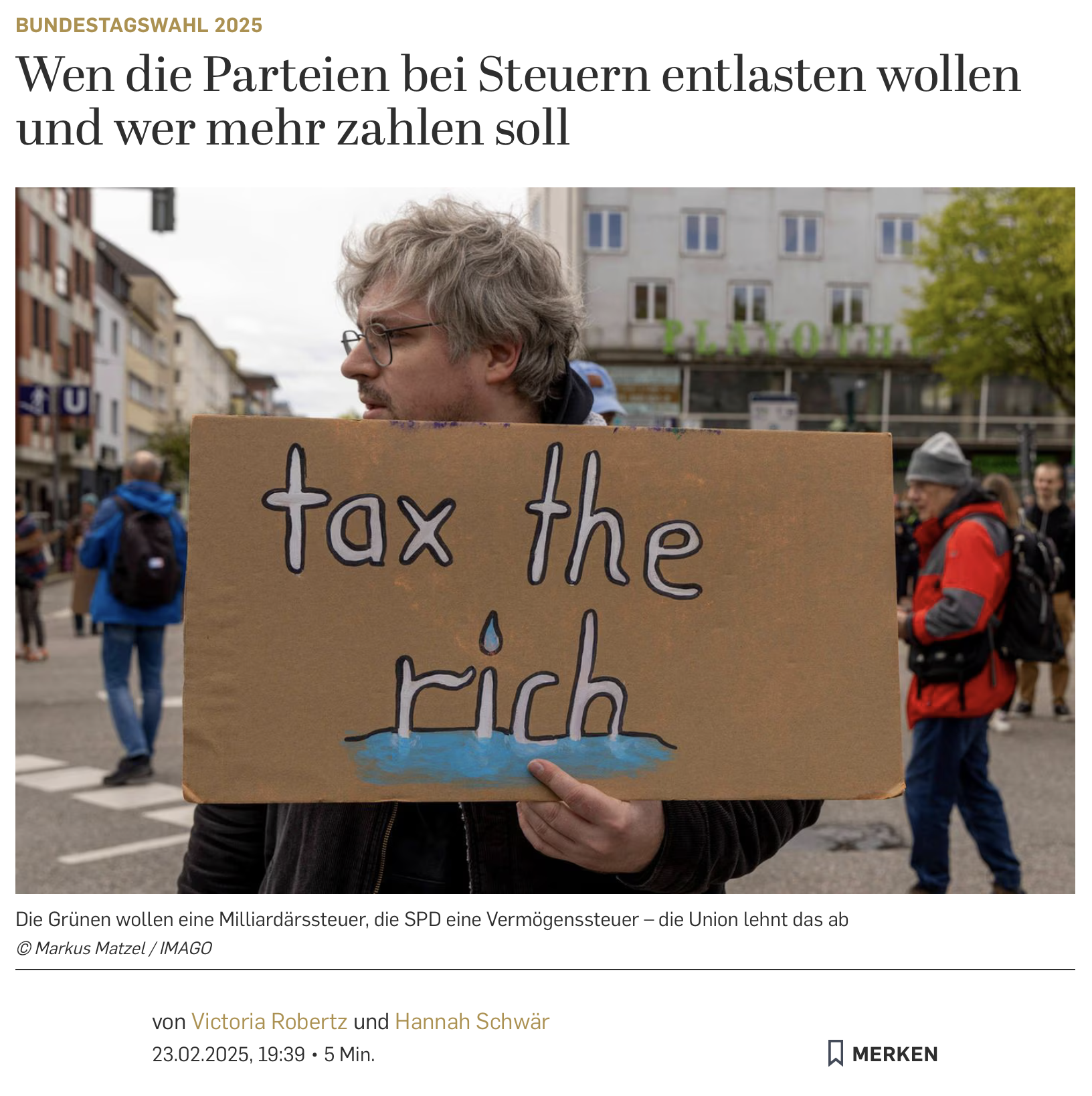 Carl Mühlbach wird hierbei mit folgender Einordnung zitiert: „Mehr als die Hälfte der Steuersenkungen im CDU-Wahlprogramm geht an das reichste Zehntel der Gesellschaft“, stellt Carl Mühlbach, Ökonom und Geschäftsführer vom Verein FiscalFuture fest. „Wie die CDU die Steuersenkungen gegenfinanzieren möchte, bleibt allerdings unbeantwortet. Das Wahlprogramm geht schon rein rechnerisch nicht auf.”