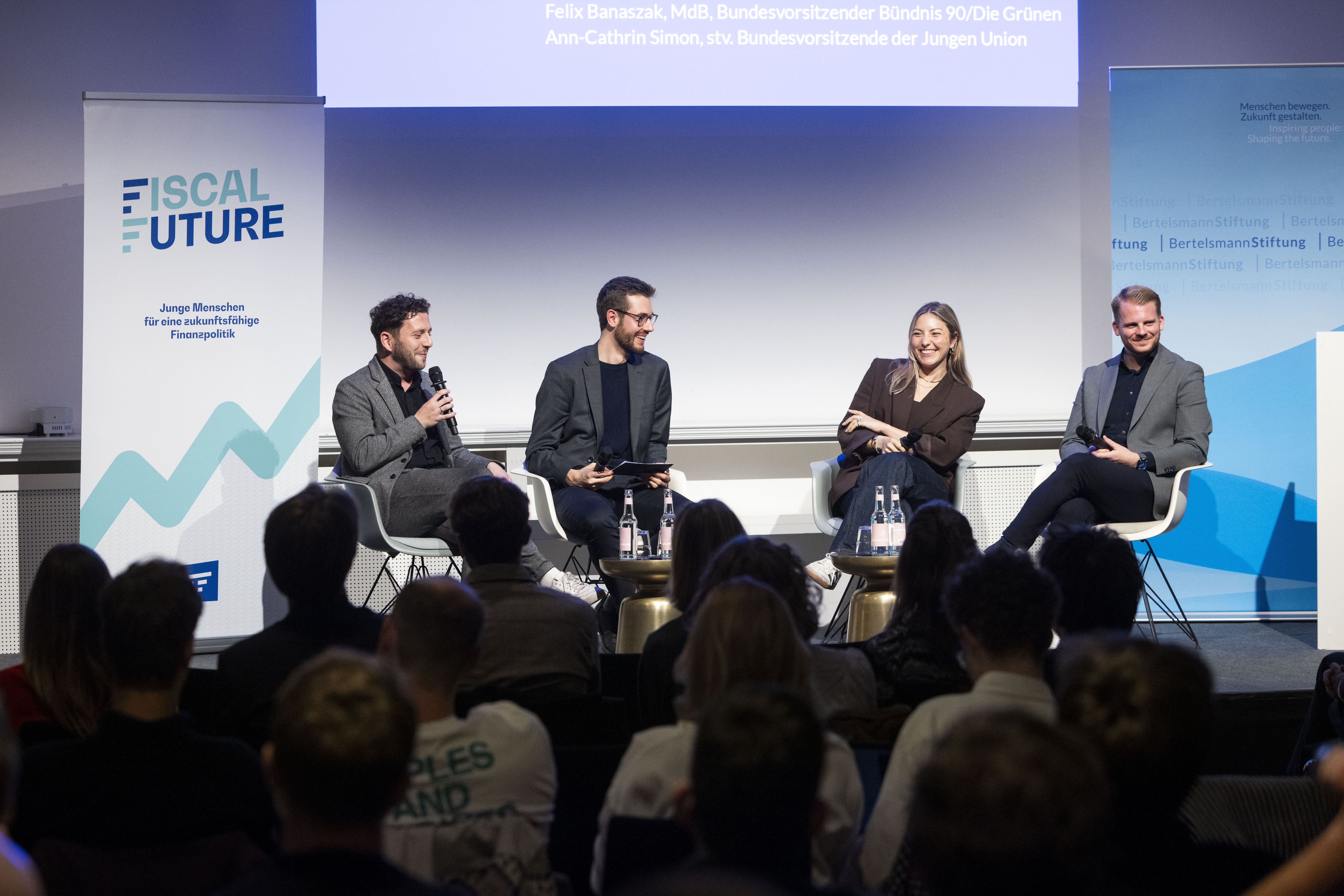 Berlin, 16. Oktober 2025 - Unter dem Titel „Investieren, modernisieren, reformieren – Wie weiter in der Finanzpolitik?“ diskutierten am Mittwochabend auf dem GLS Campus in Berlin mehr als 150 junge Menschen mit führenden Politiker:innen und Expert:innen über die Zukunft der deutschen Finanzpolitik. Die Veranstaltung wurde gemeinsam von FiscalFuture und der Bertelsmann Stiftung durchgeführt.