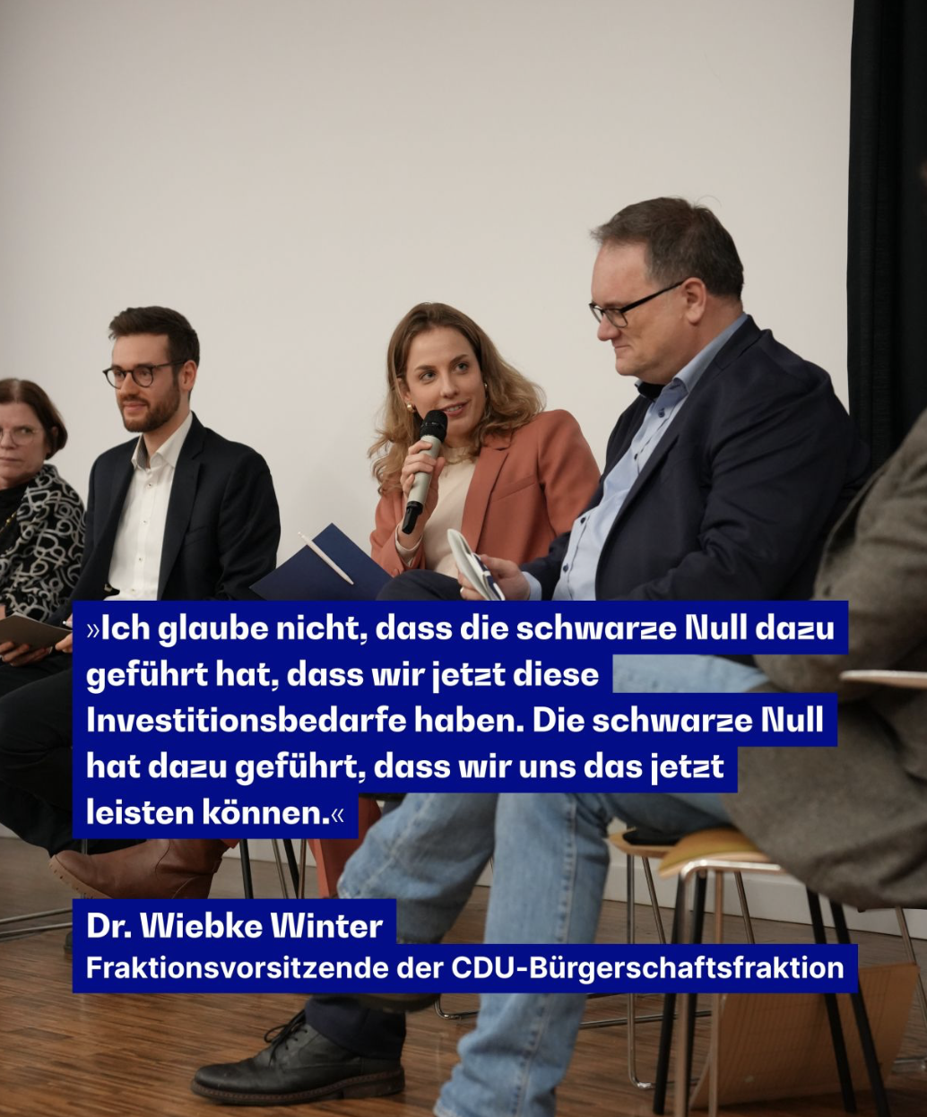 Unter reger Beteiligung des Publikums diskutierten Björn Fecker, Maurice Höfgen, Kristina Vogt, Falk Wagner und Wiebke Winter rund um die Fragen: Was bringt die aktuelle Finanz- und Wirtschaftspolitik der Bundesregierung? Kann der Aufbruch aus der ökonomischen Talfahrt gelingen?